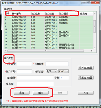 目前智能站二次設(shè)備廠家提供的ICD文件,一部分已經(jīng)將裝置背板的信息集成到了的ICD文件中,山東容弗的設(shè)計(jì)系統(tǒng)通過(guò)解析ICD文件中Communication部分的內(nèi)容,將物理端口以板卡型號(hào)、端口名稱、端口類(lèi)型的方式作為裝置的屬性展示出來(lái),如下圖所示,作為光纜纖芯連接的基礎(chǔ)。