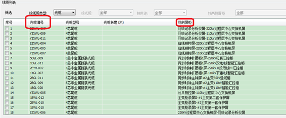3)光纜組完之后,可進(jìn)行核對(duì),查看,導(dǎo)出光纜清冊(cè)表、尾纖表、光纜光纖標(biāo)簽表等報(bào)表。